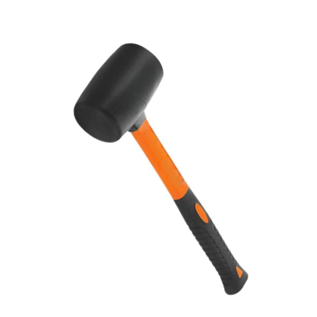 Testa in gomma solida. Manico in fibra con impugnatura ergonomica. 450 gr.